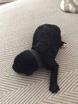 boy.wavy coat.white on chest and back 2 paws